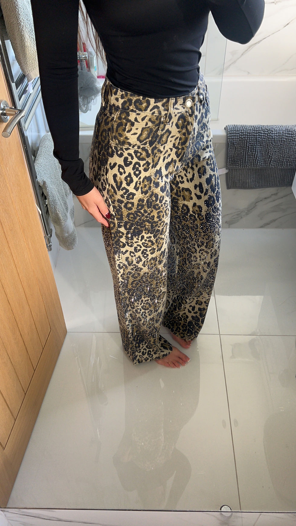 BLACK DIAMANTÉ WIDE LEG JEANS